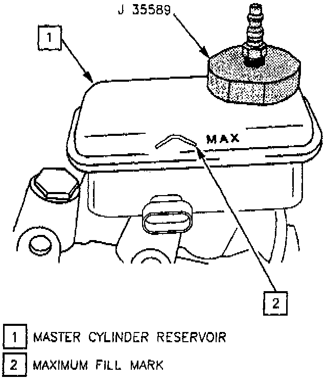 IMPORTANT: The correct master cylinder bleeder adapter must be used to avoid possible damage to the master cylinder reservoirs.