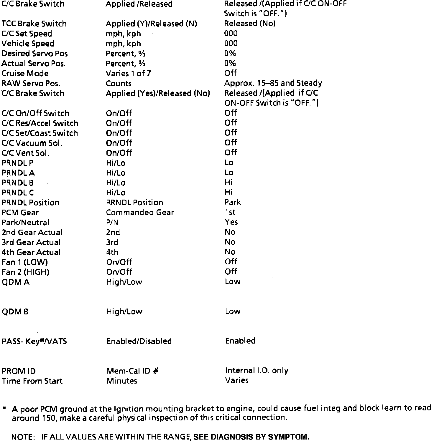 Typical Scan Data Values: