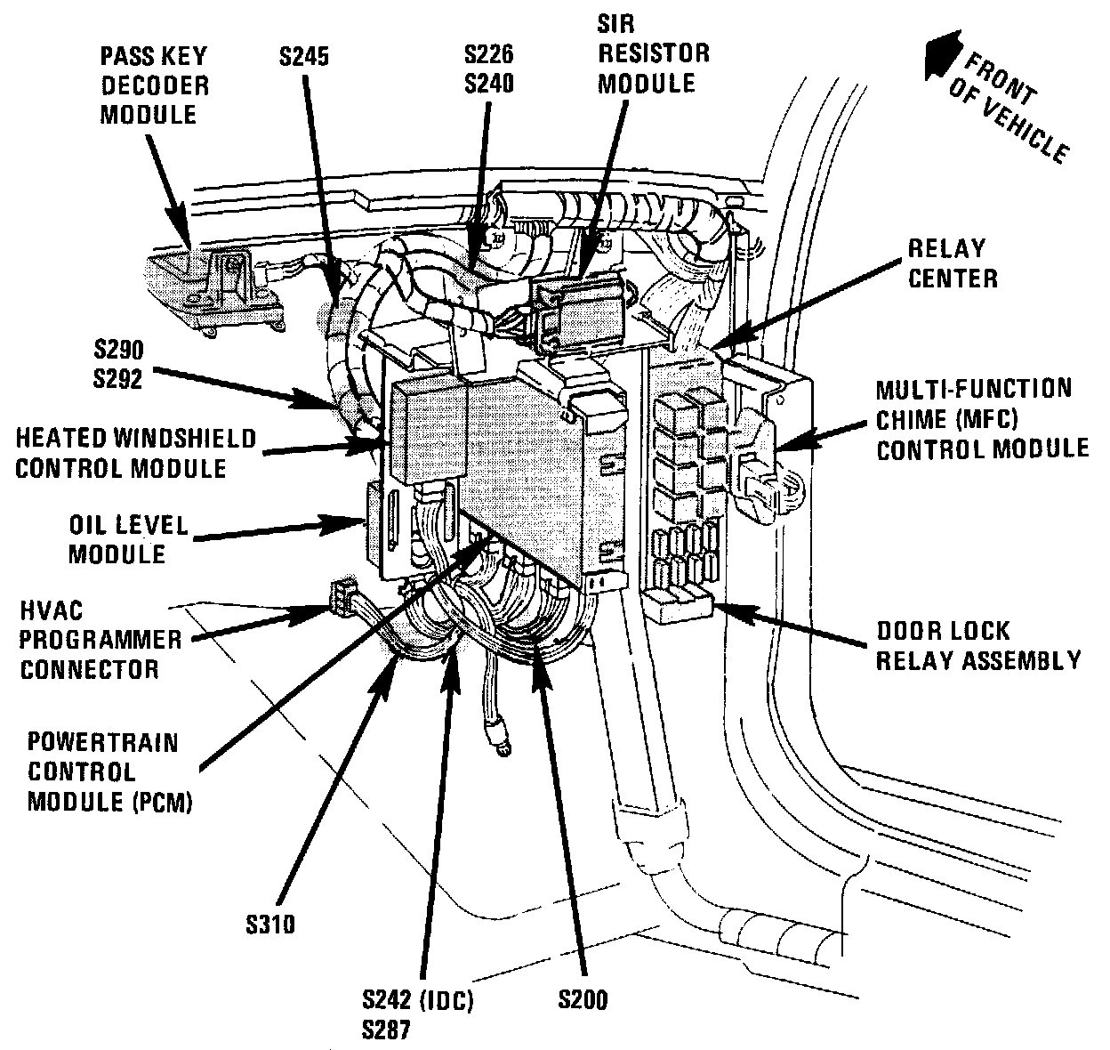 Behind RH side of I/P, left of Powertrain Control Module (PCM)