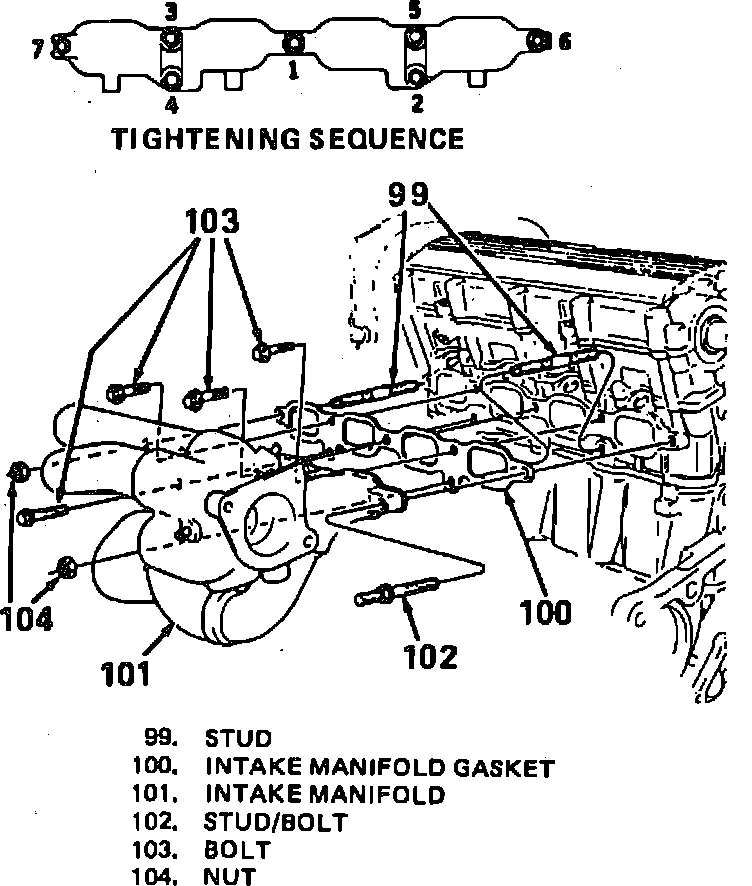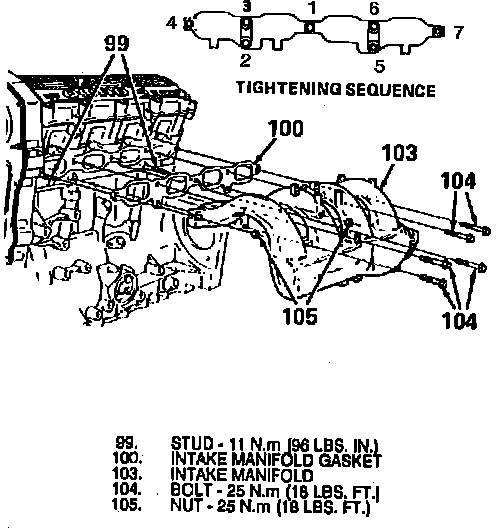 Fig. 11 Intake Manifold Installation & Bolt Tightening Sequence. 1992: