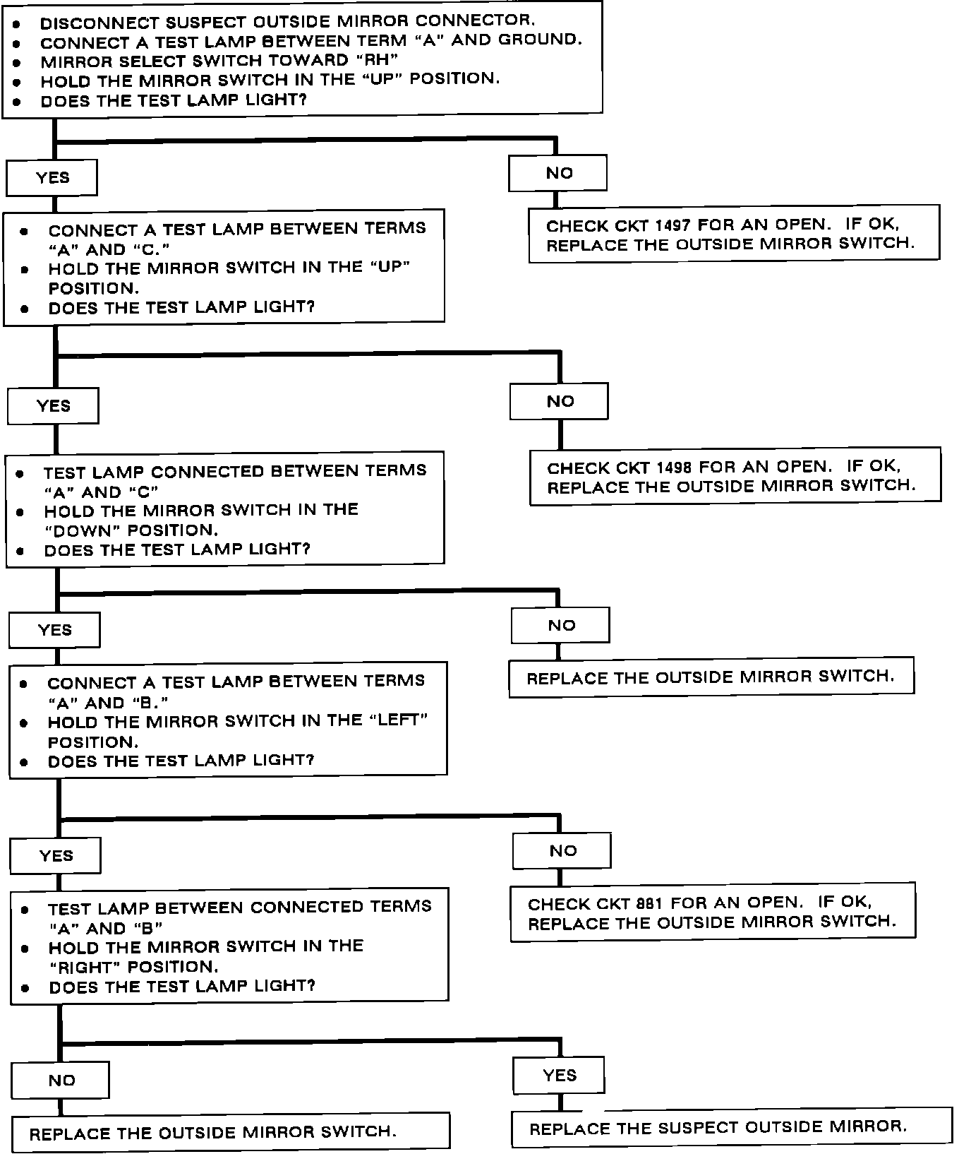 RH Mirror Does Not Operate In The "UP/DOWN" Or "LEFT/RIGHT" Mode: