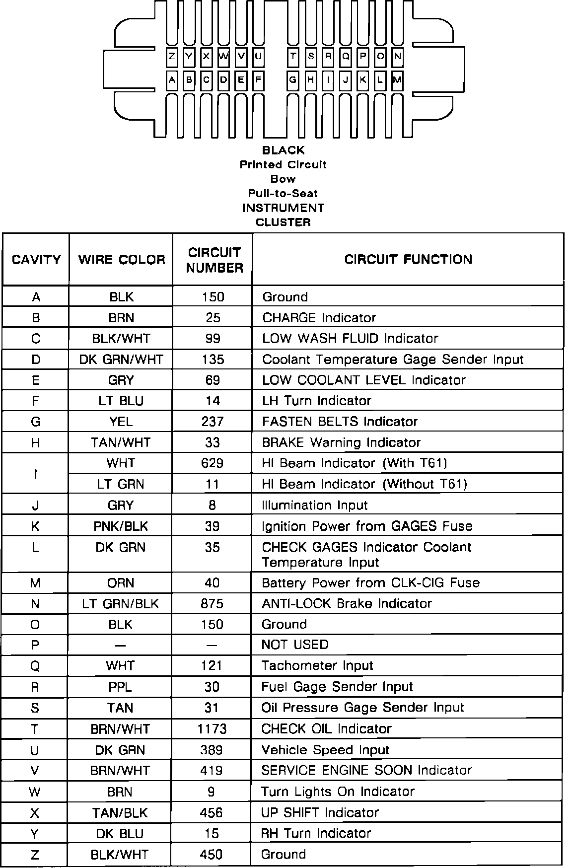 Instrument Cluster Connector Face: