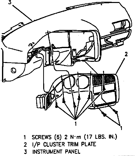 7. Reverse procedure to install. Torque instrument cluster trim plate attaching screws to 17 inch lbs.