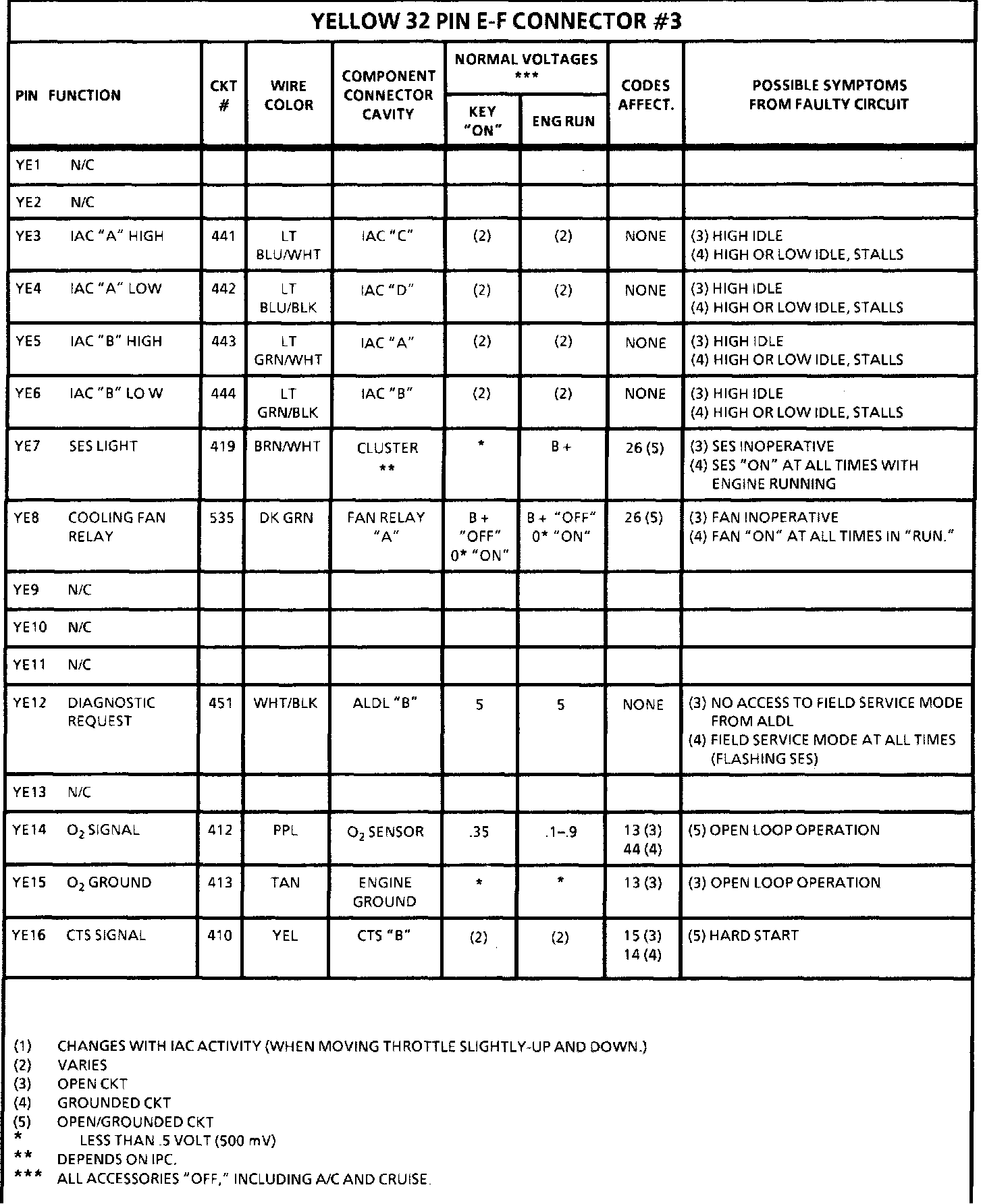 Pinout Values and Diagnostic Parameters