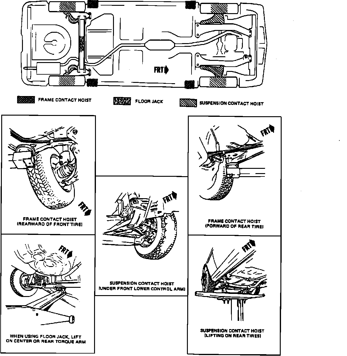 The illustrations listed in the 1992 Achieva Service Manual, Page 0A-7, Figure 12, are to be updated with the illustrations which shows the revised lifting and jacking points.