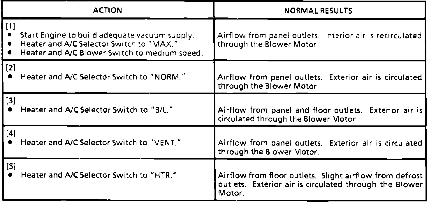 A/C: Air Delivery and Temperature Control System Check: