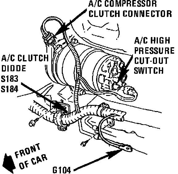 Engine harness, RH front of engine, below A/C compressor