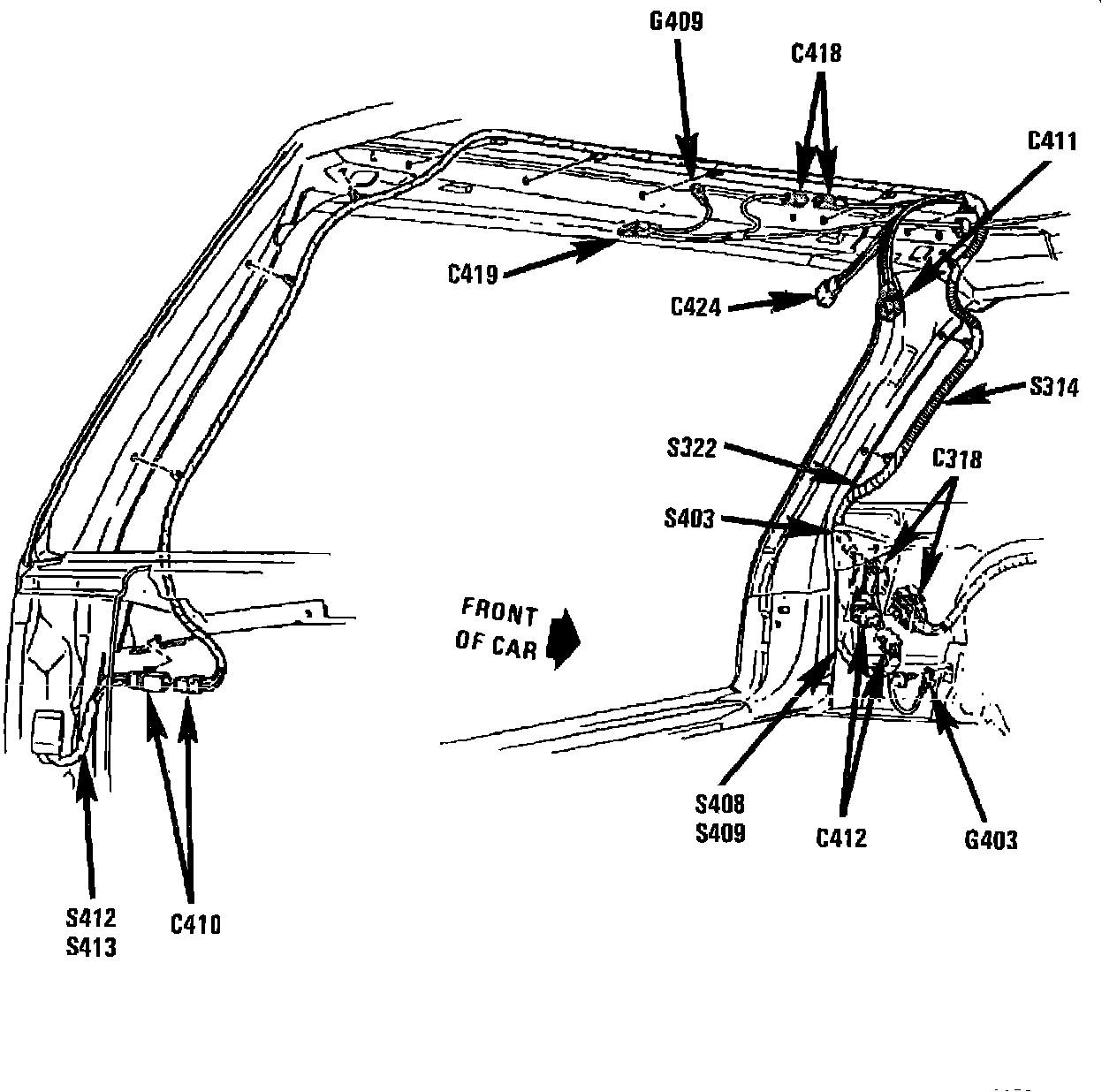 RH tail lights harness, base of RH tailgate pillar