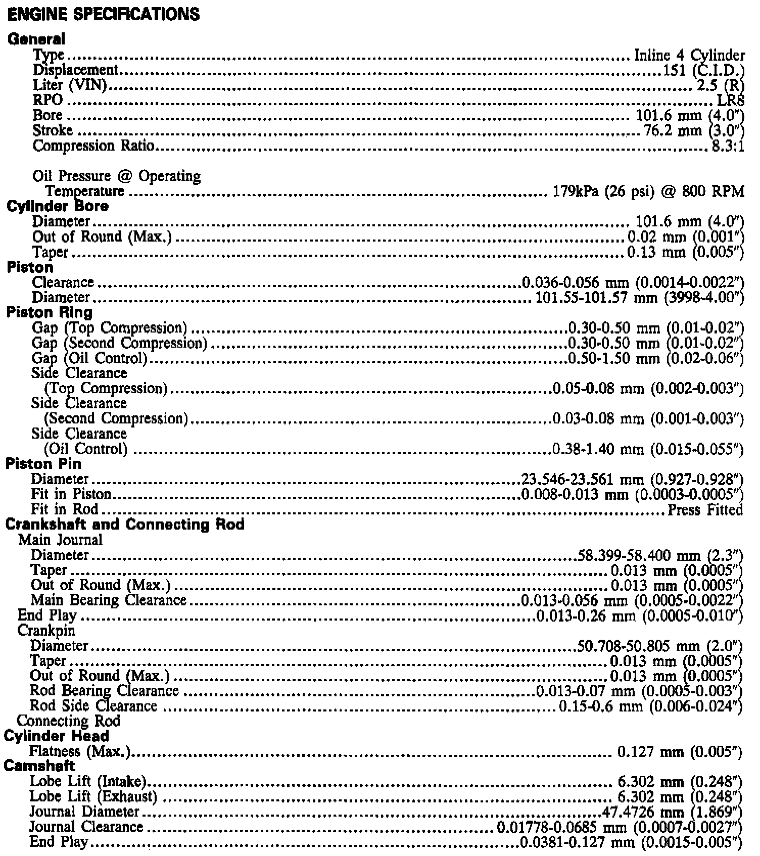 Engine Specifications: