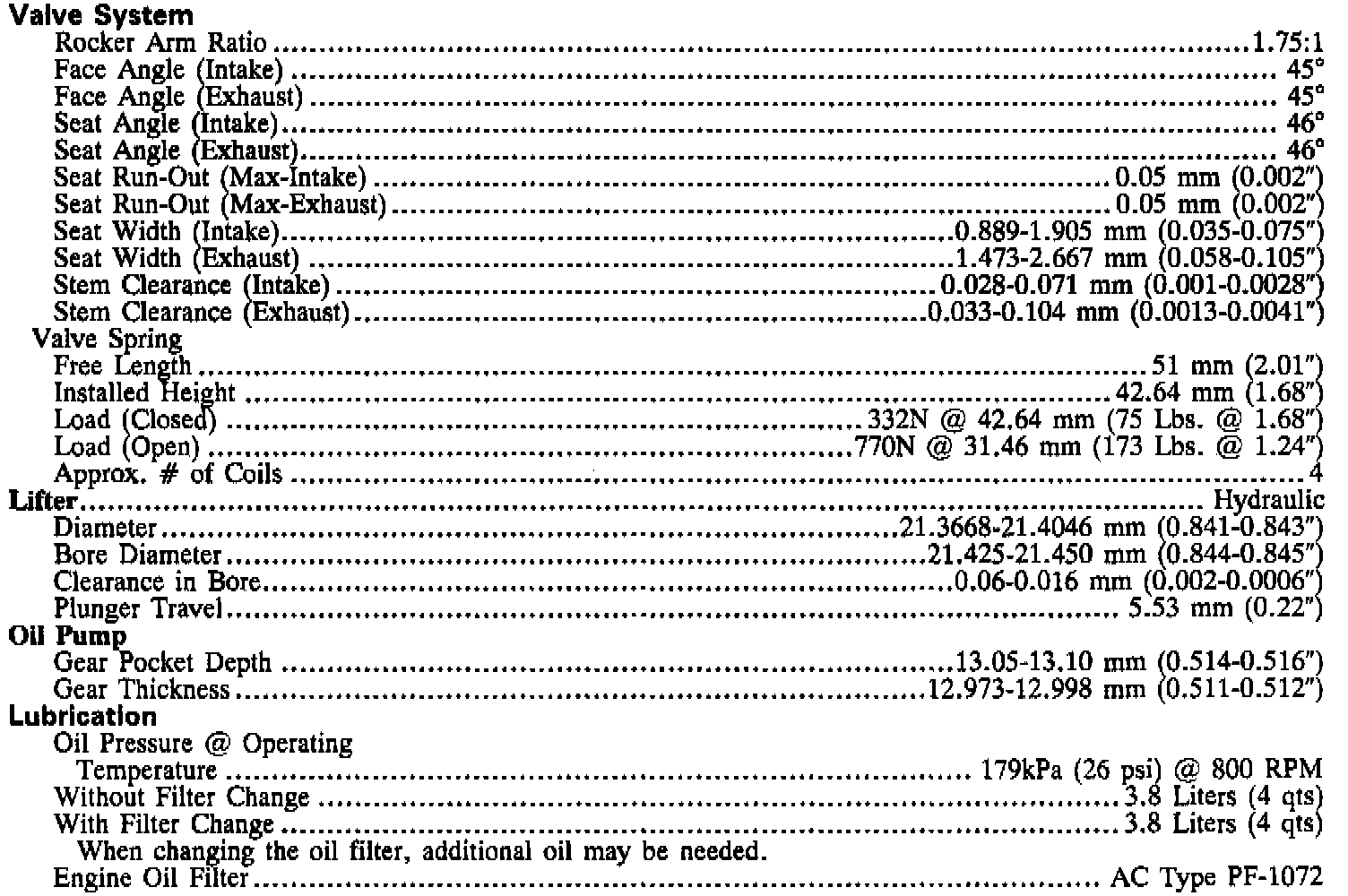 Engine Specifications (continued):