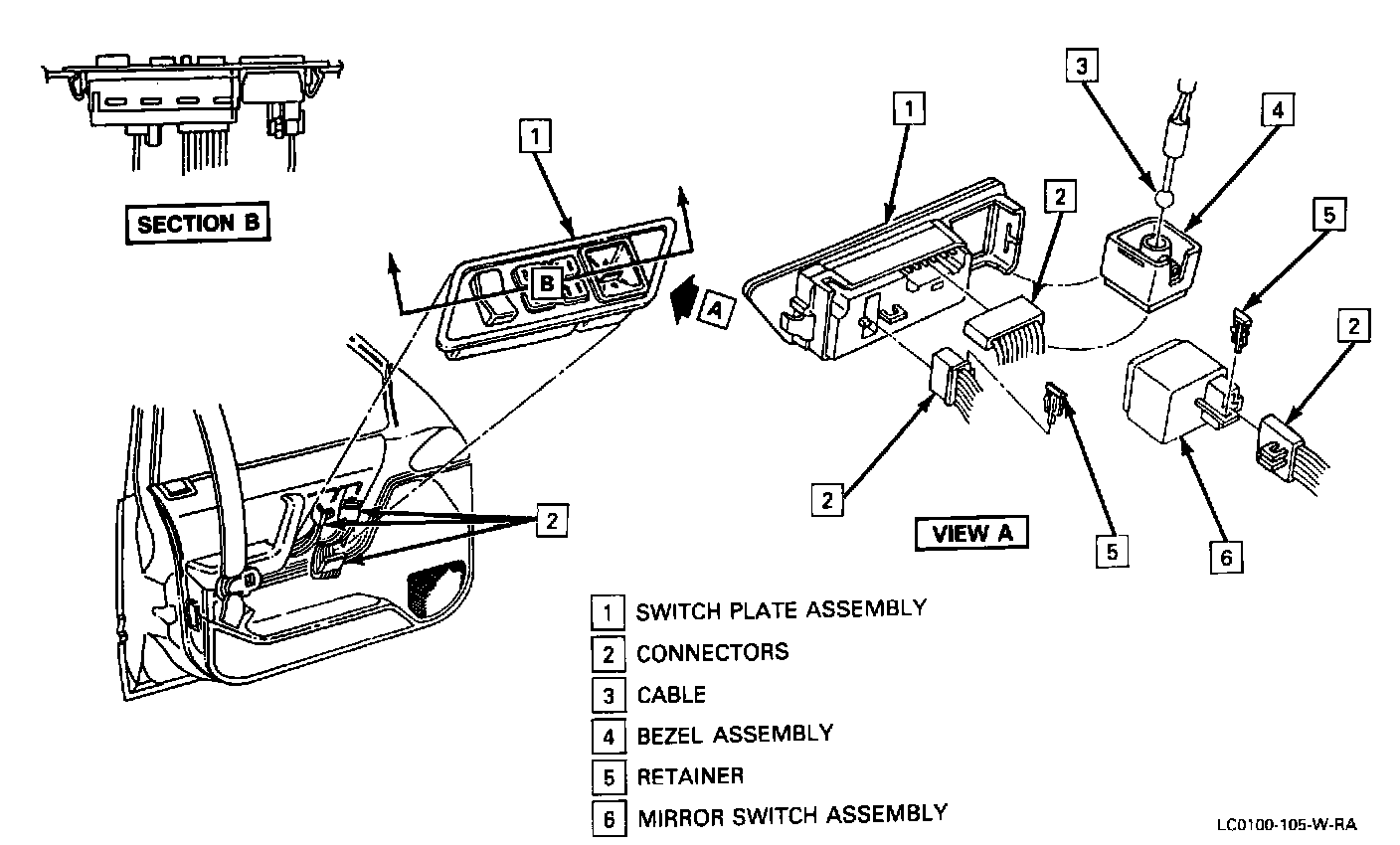 1. Cable to bezel assembly, if equipped. Tighten set screw to secure.