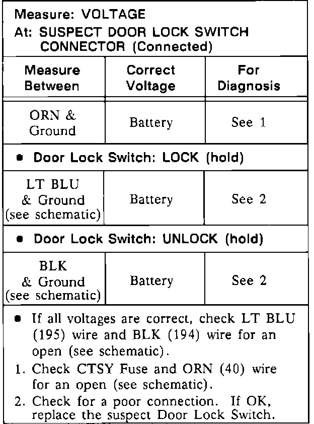Power Door Lock Switch: Testing and Inspection