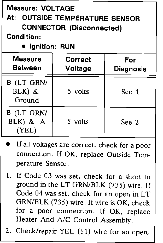 Test B: Outside Temperature Sensor Test: