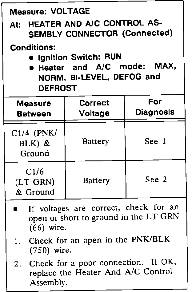 Test E: A/C Compressor Function Control Test: