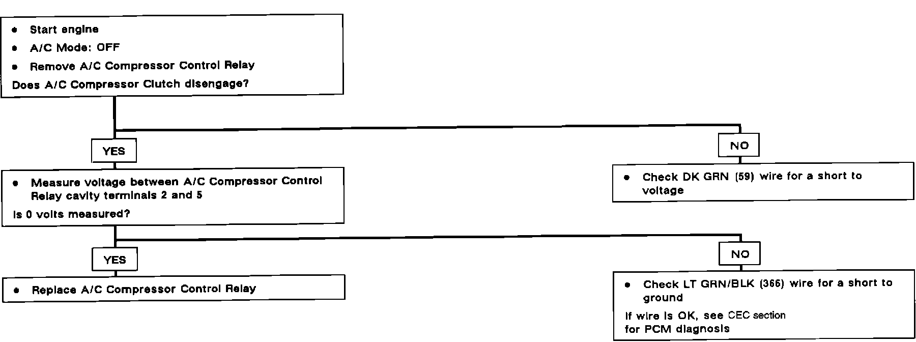 Test D: A/C Compressor Control Relay Short Test: