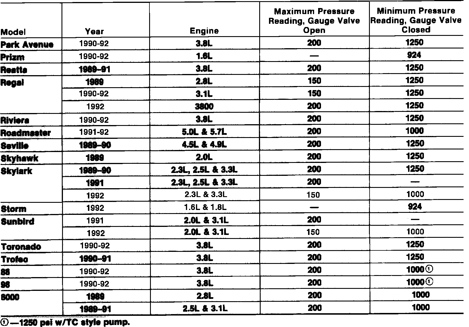Power Steering Pressure Specifications: