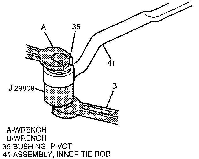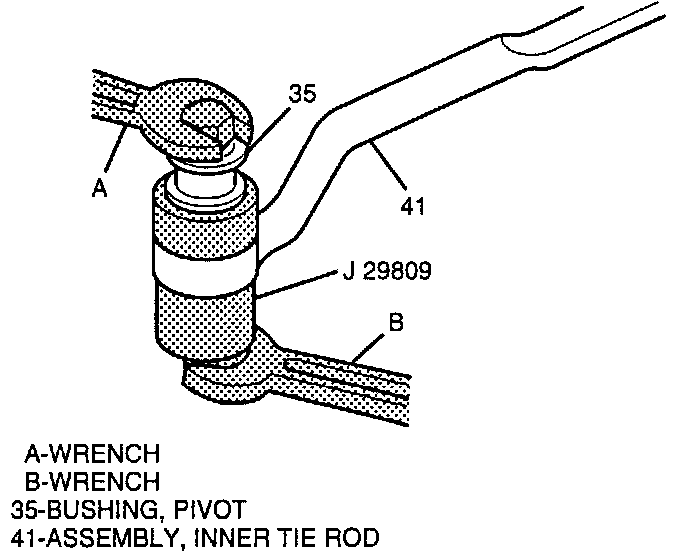 1. Inner pivot bushing (35) from inner tie rod (26) or (41) using J 29809.