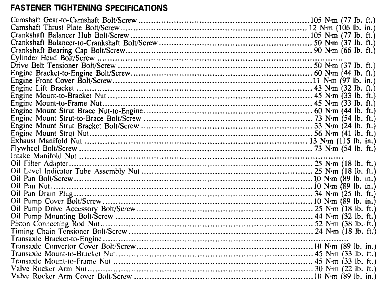 Torque Specifications: