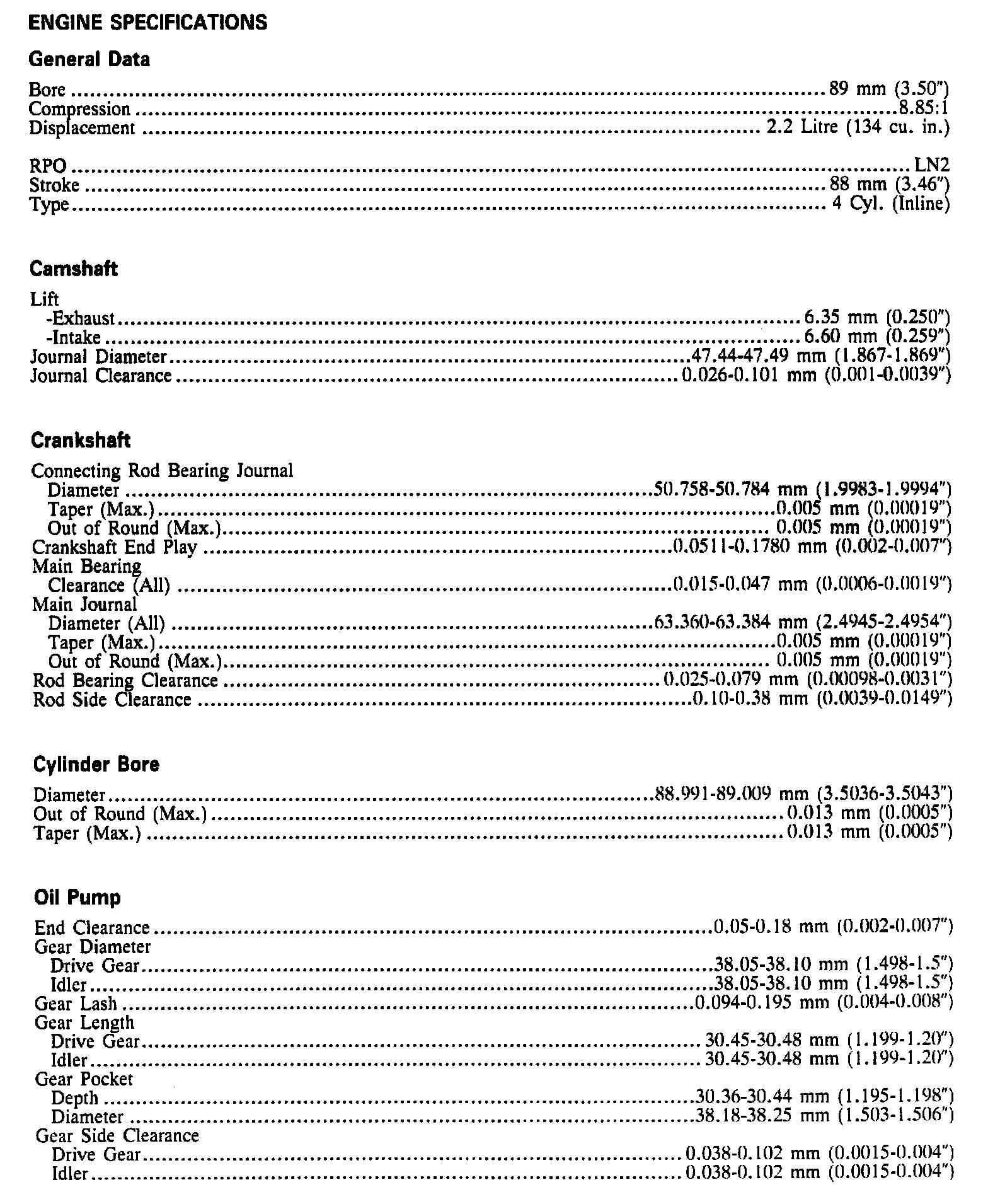 Continued Engine Specifications: