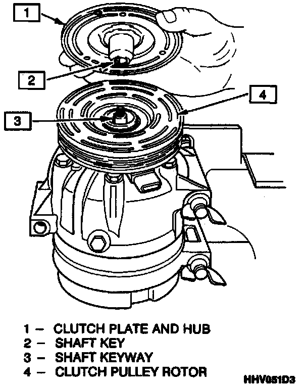 3. Align the shaft key with the shaft keyway and place the clutch plate and the hub assembly onto the compressor shaft.