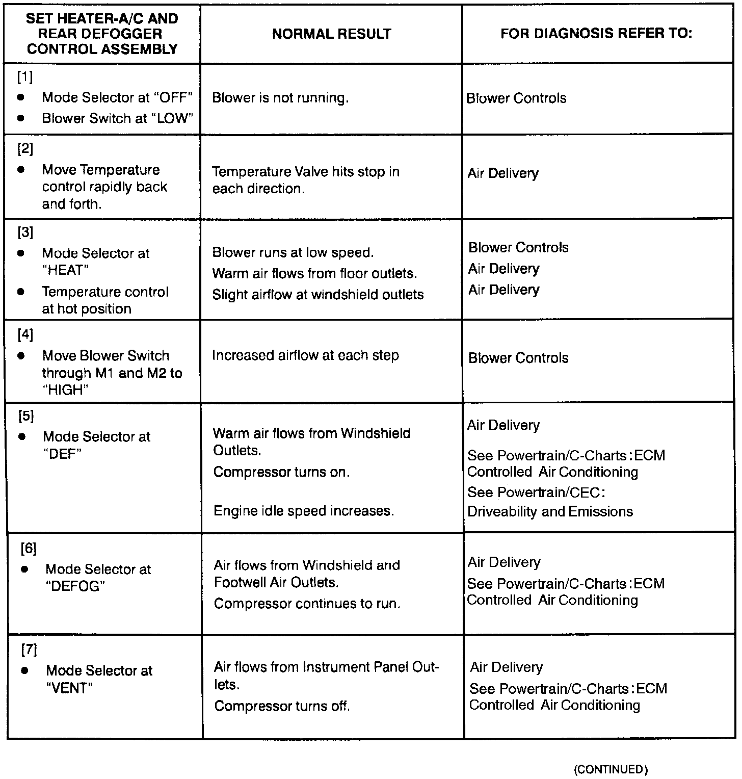 ^ All of the steps in each procedure can be completed without the use of tools or disassembly. Detailed diagnostic procedures are in other parts of the database and are referenced in each step.