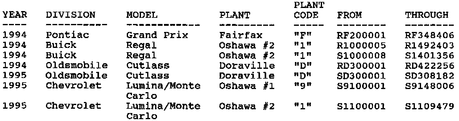Involved are certain 1994 Pontiac Grand Prix; 1994-95 Buick Regal, Oldsmobile Cutlass Supreme and 1995 Chevrolet Lumina/Monte Carlo model vehicles built within the following VIN breakpoints: