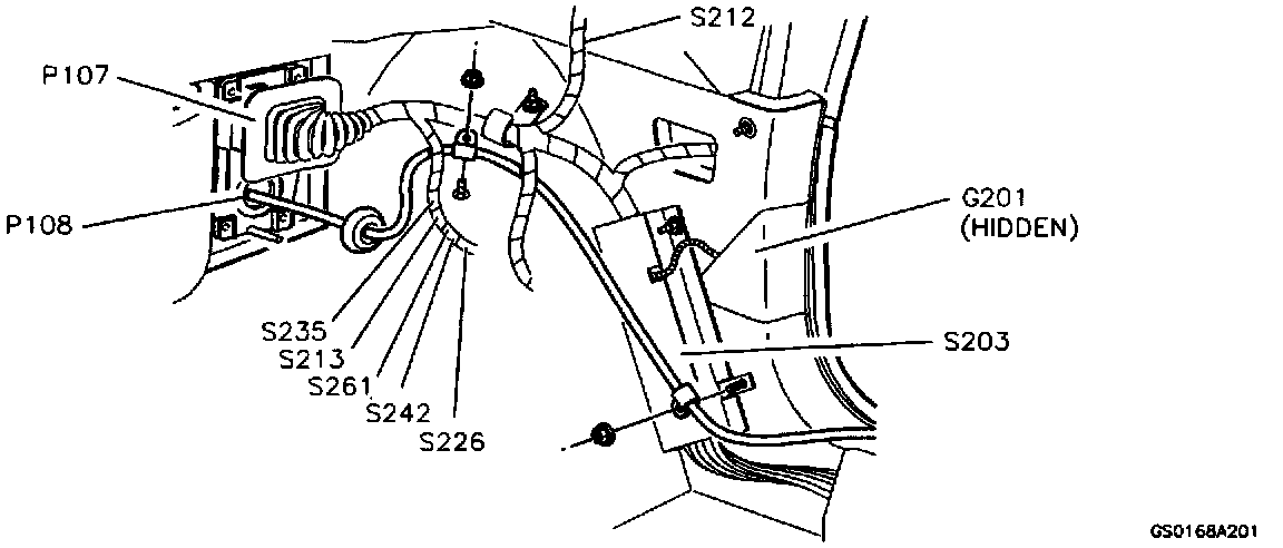 Below I/P, RH Side, Pass-Through Grommet P107 Area: