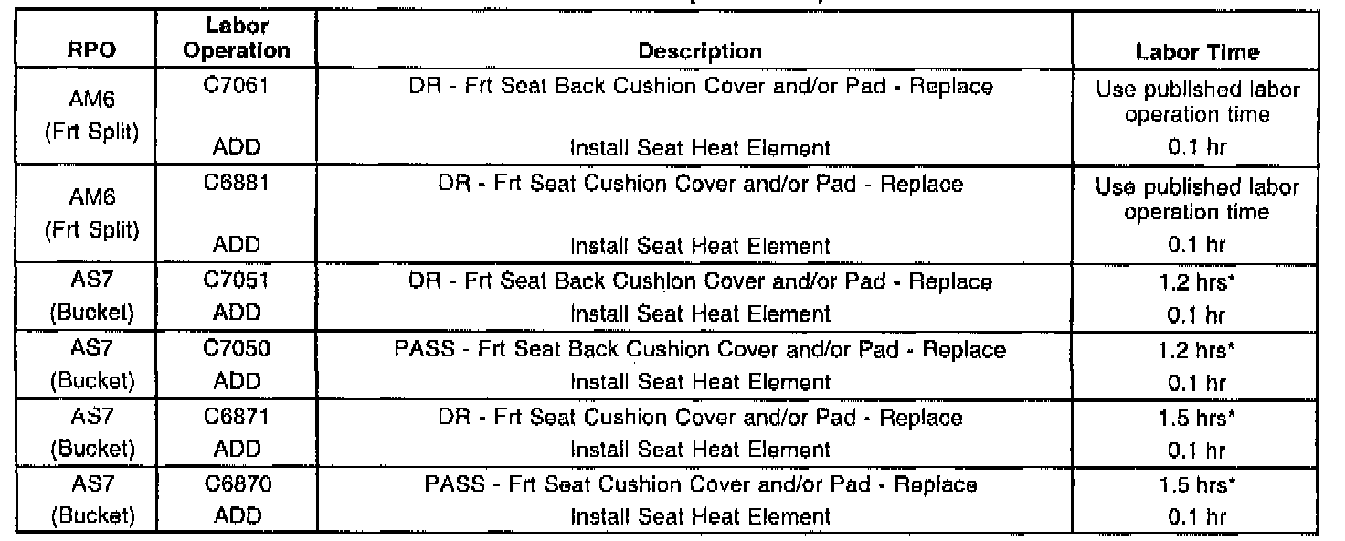 Front Seat Back and/or Seat Cushion Heat Element is Non-Functioning (Replace Seat Heat Element)