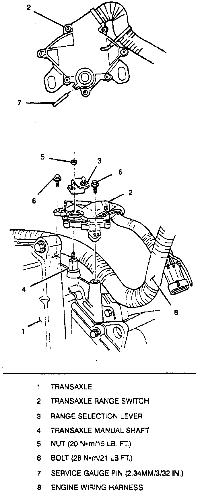 2. Rotate range switch so service gauge pin can be installed Torque transaxle range switch bolts to 106 inch lbs.