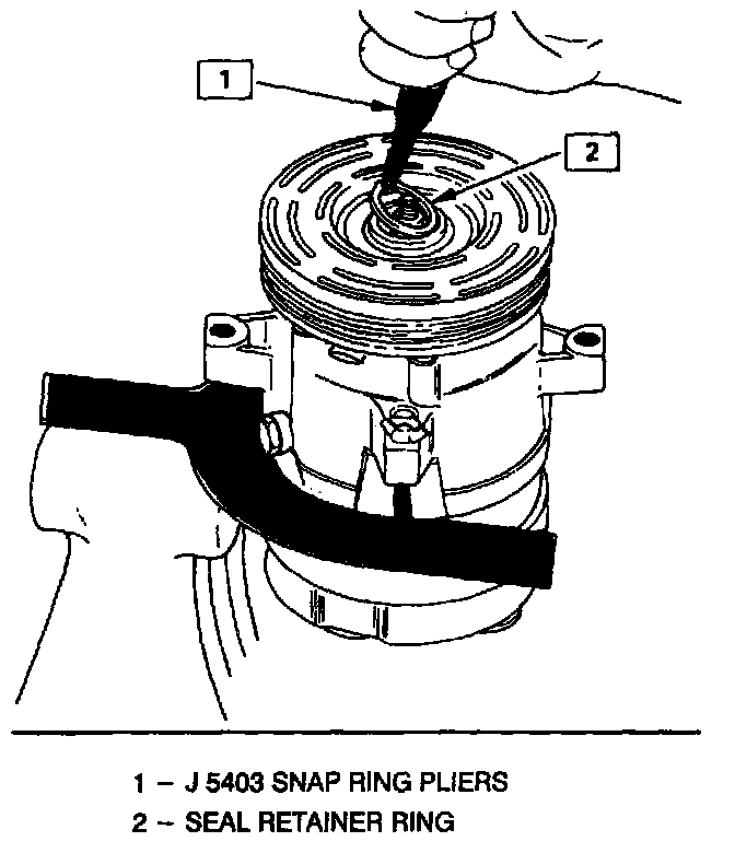 4. Remove the shaft seal retainer ring, using snap ring pliers J 5403.