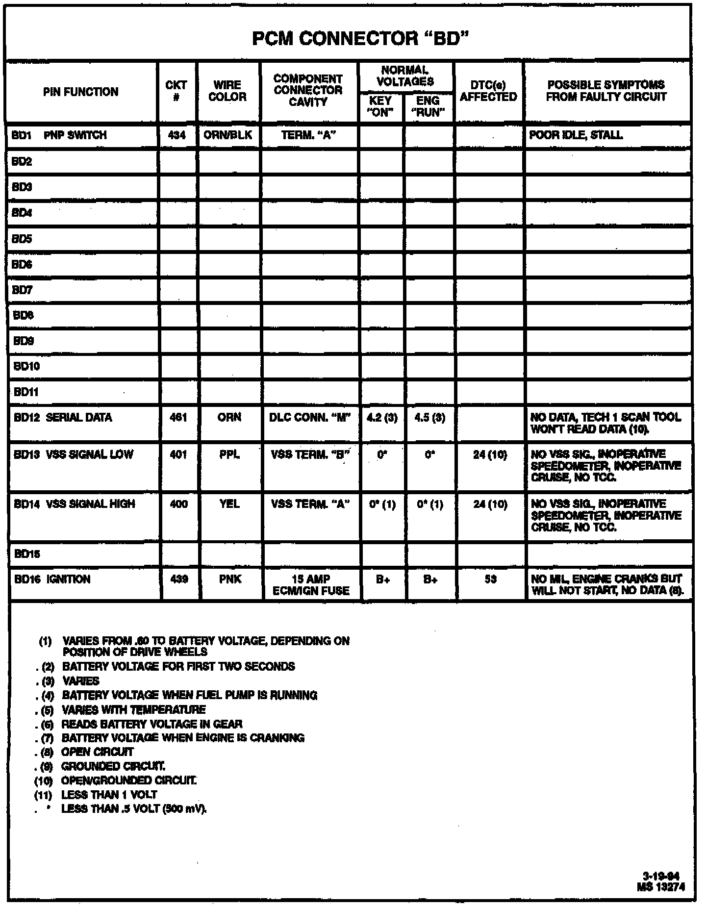 Pinout Values and Diagnostic Parameters