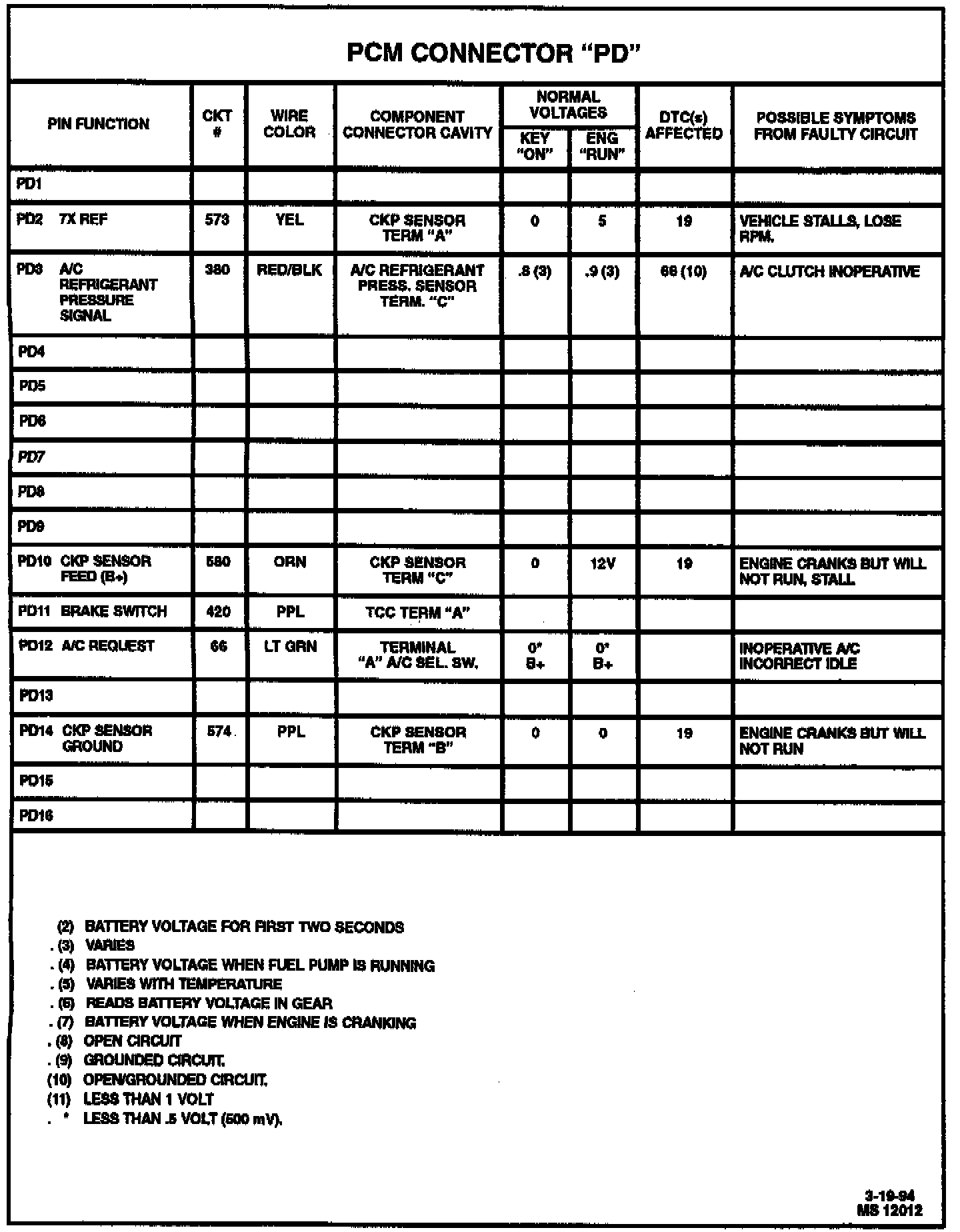 Pinout Values and Diagnostic Parameters