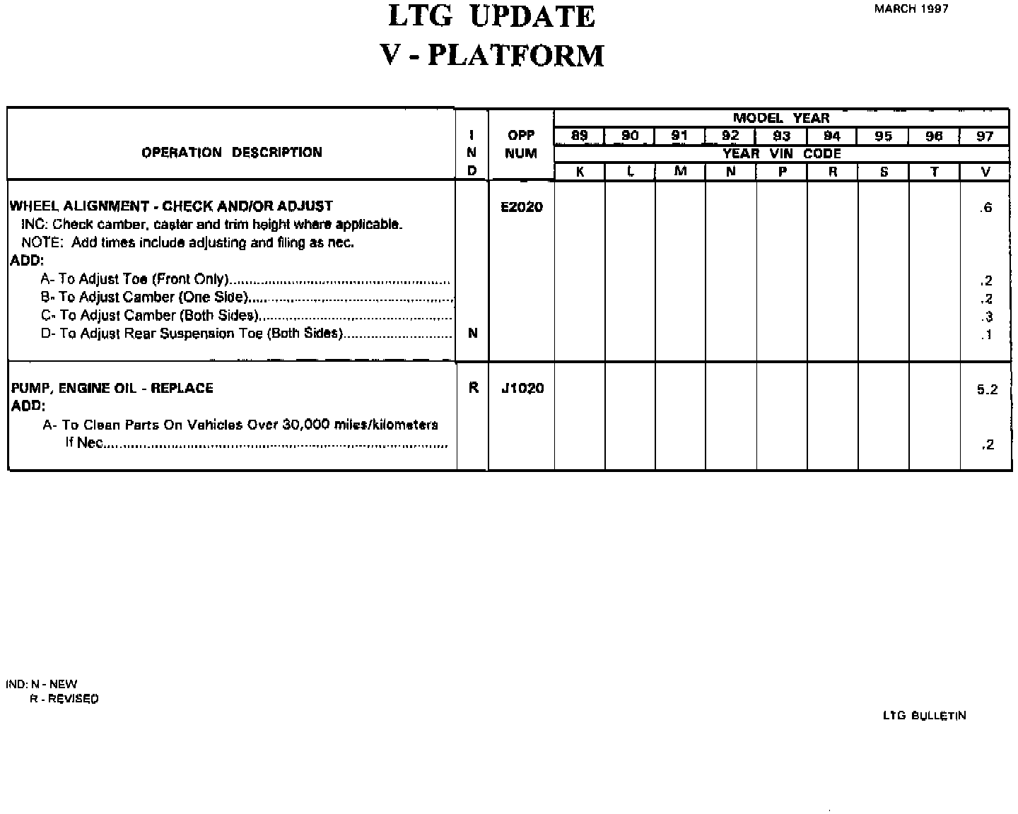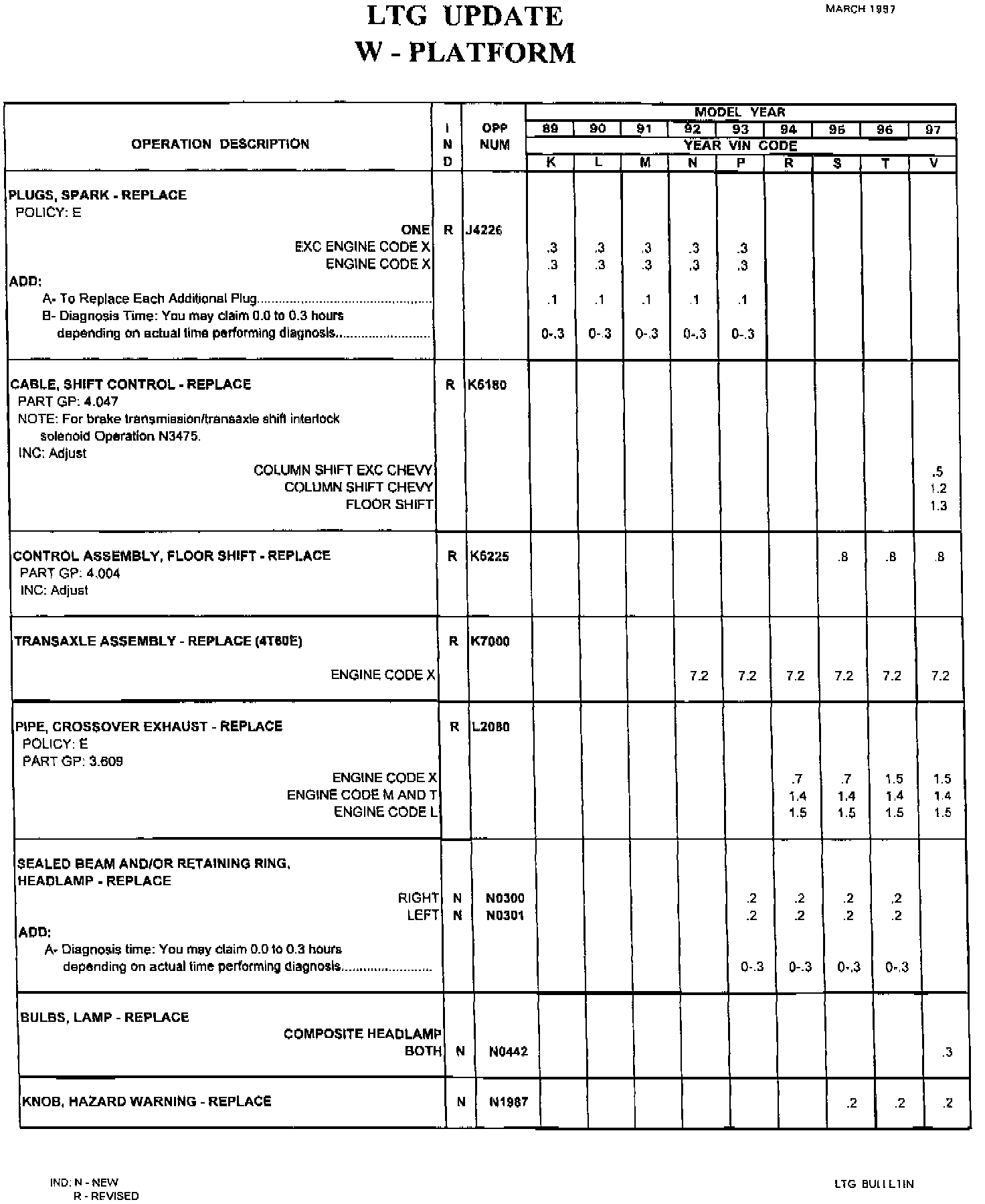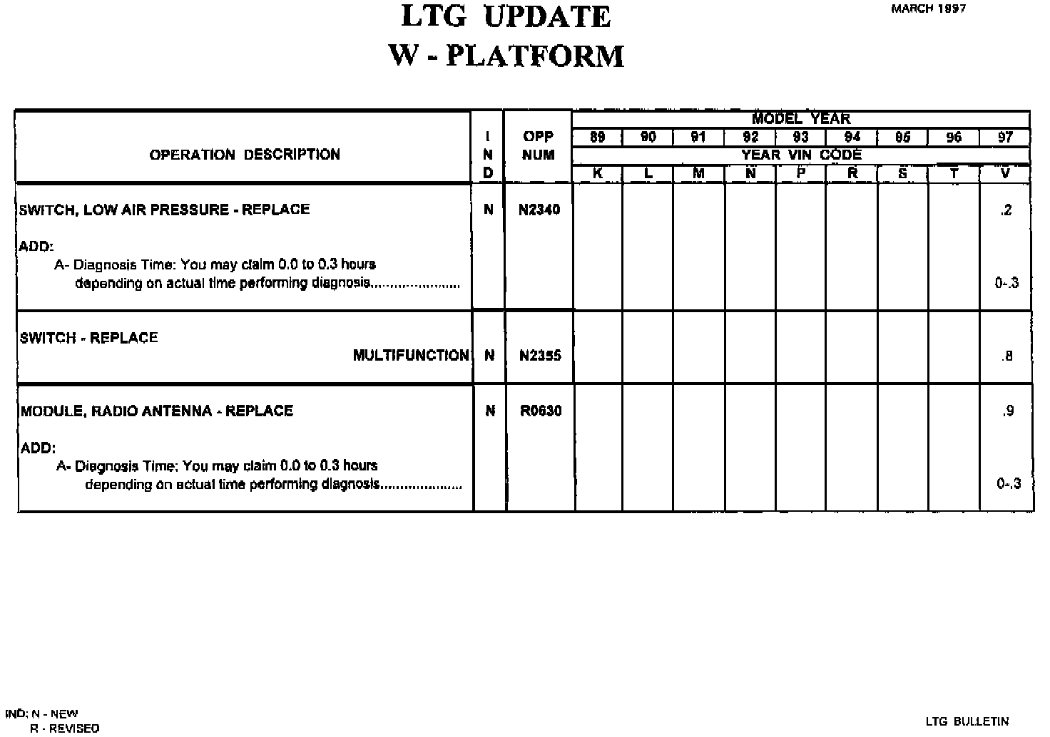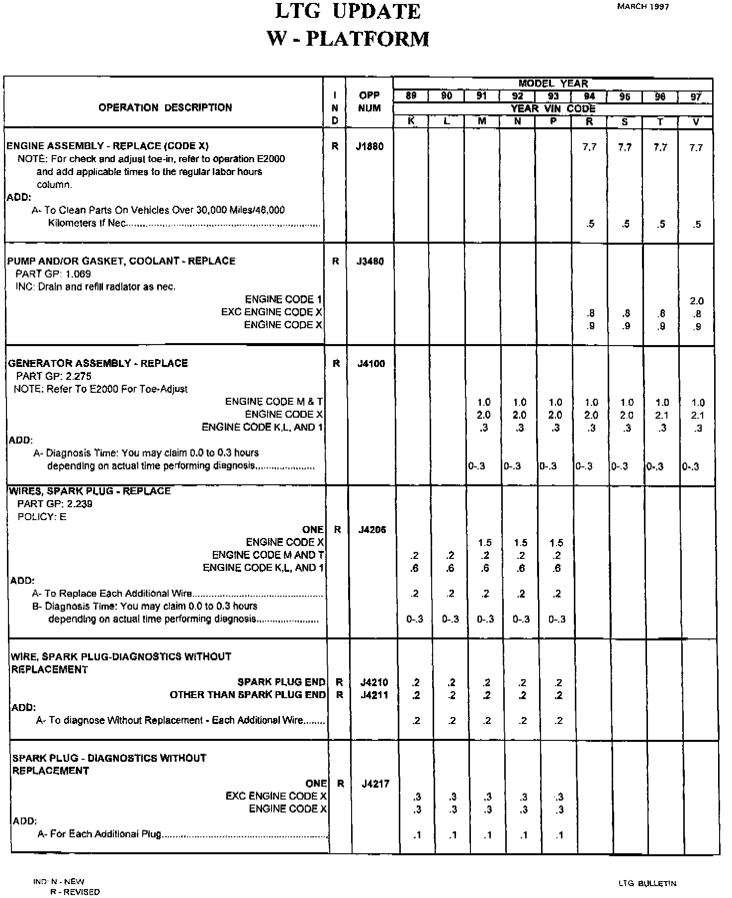 This bulletin addresses changes to the published General Motors Labor Time Guides. These changes (new or revised) are the result of new time studies and dealer "Requests for Review" being handled by the Service Technology Group. They are effective upon receipt. All changes will appear in the next printing of the Labor Time Guide.
