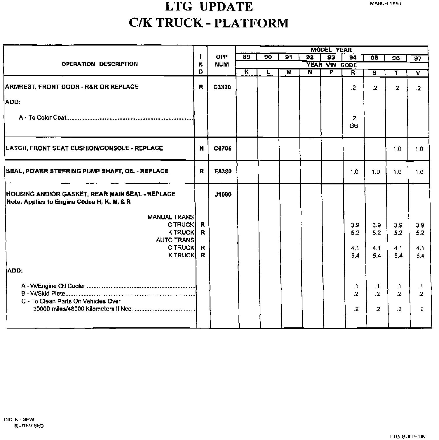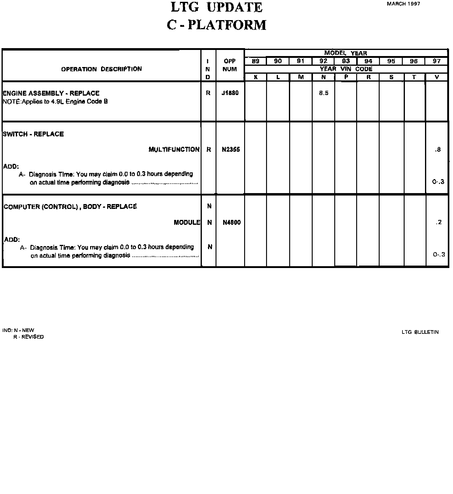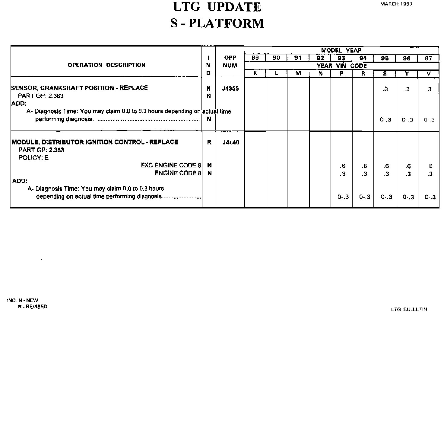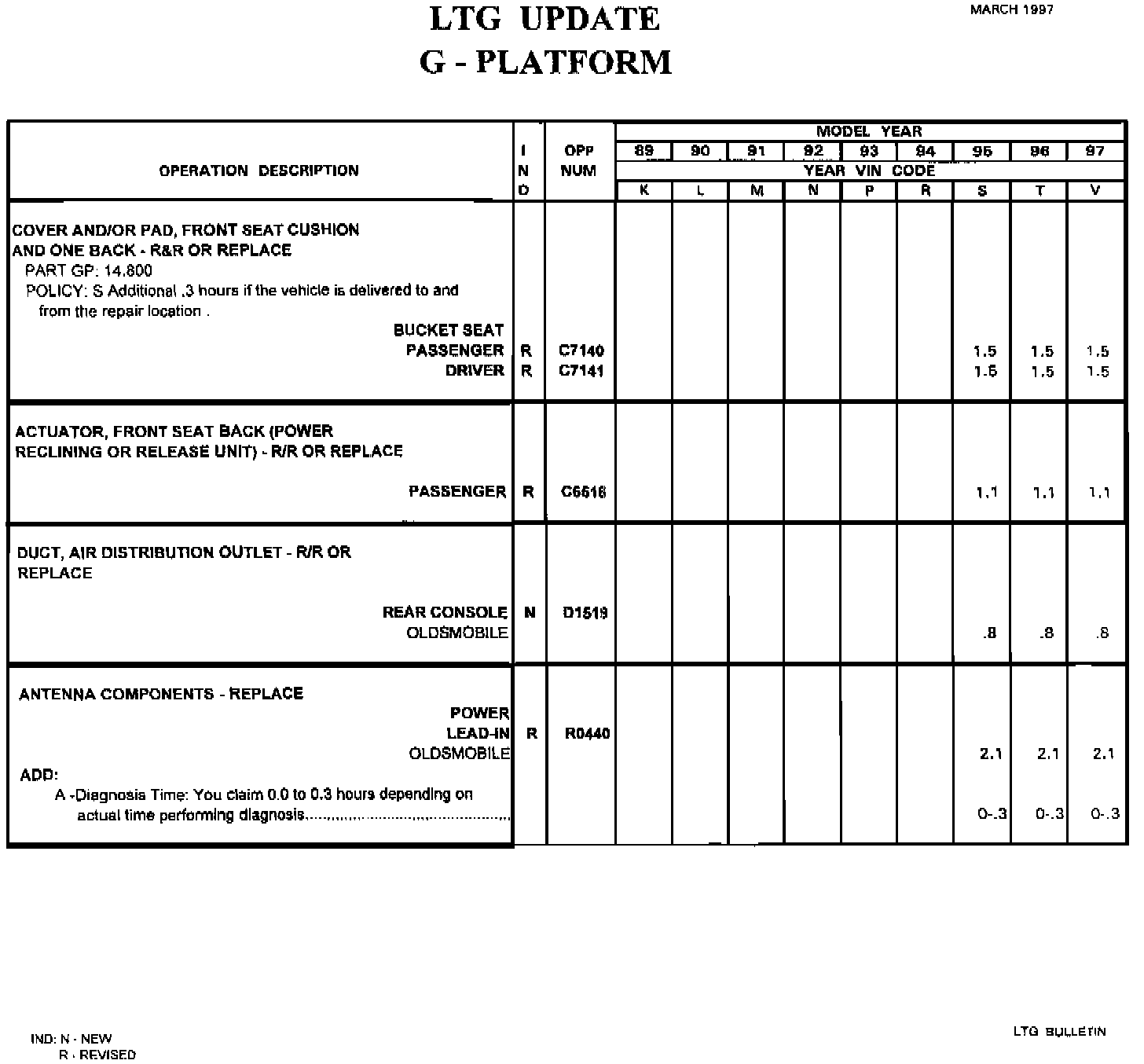 This bulletin addresses changes to the published General Motors Labor Time Guides. These changes (new or revised) are the result of new time studies and dealer "Requests for Review" being handled by the Service Technology Group. They are effective upon receipt. All changes will appear in the next printing of the Labor Time Guide.