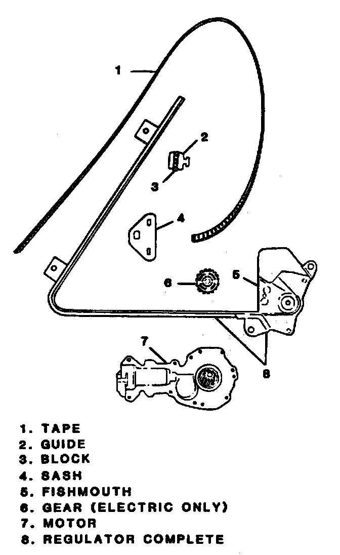 7. Use crank handle or run regulator motor (if electric) to remove tape from regulator.