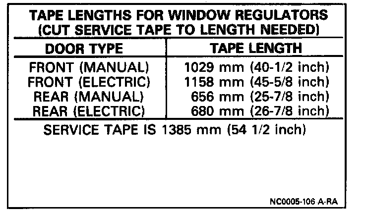 Tape Length For Window Regulators:
