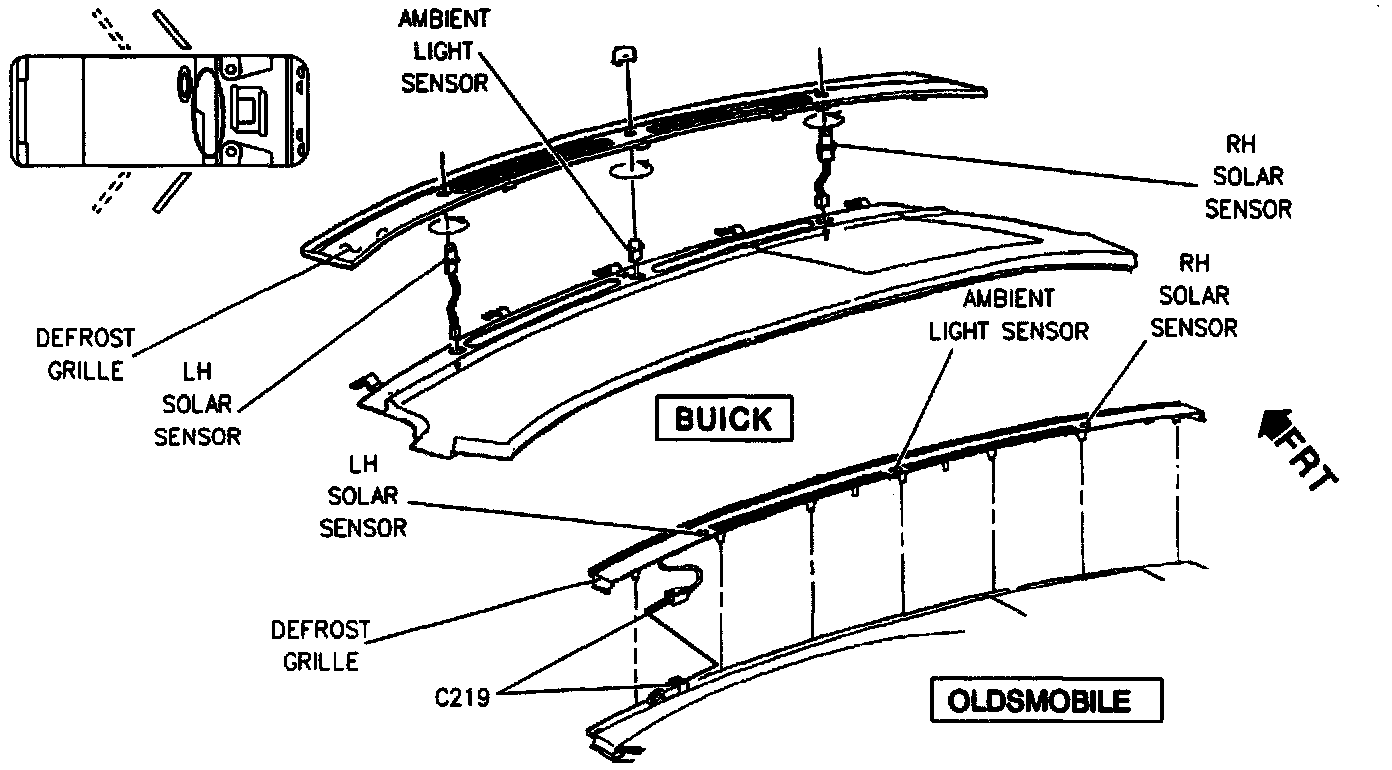 Top Of Instrument Panel, Under Defroster Grille: