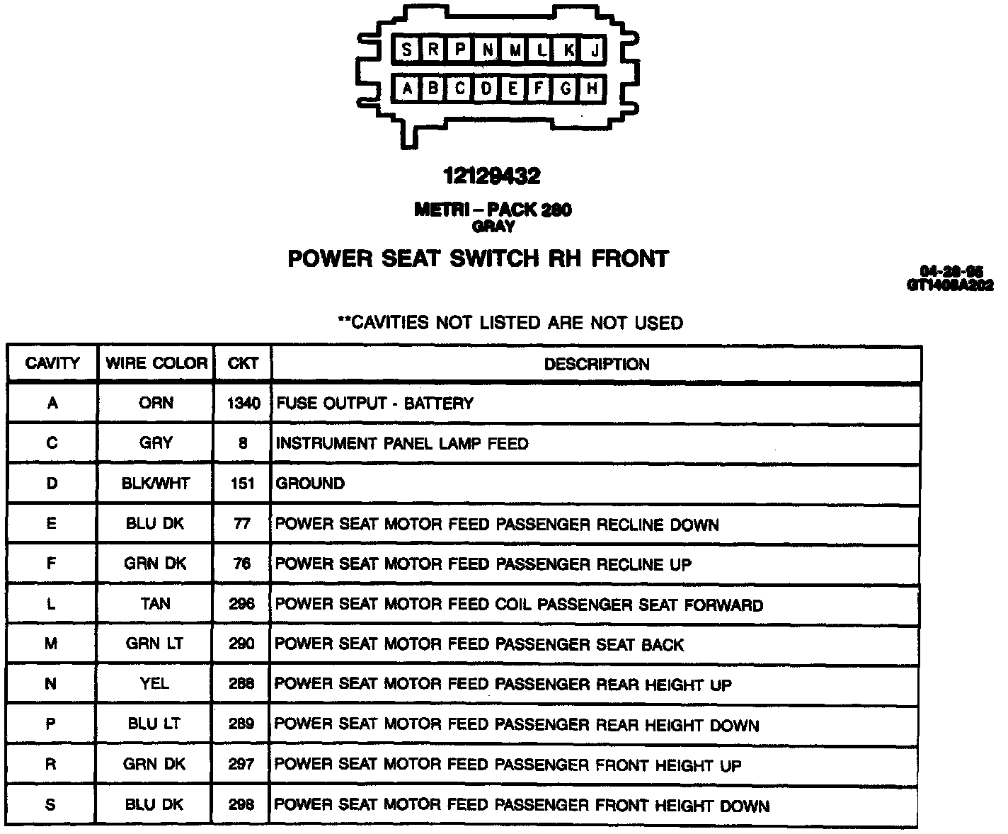 Power Seat Switch RH Front: