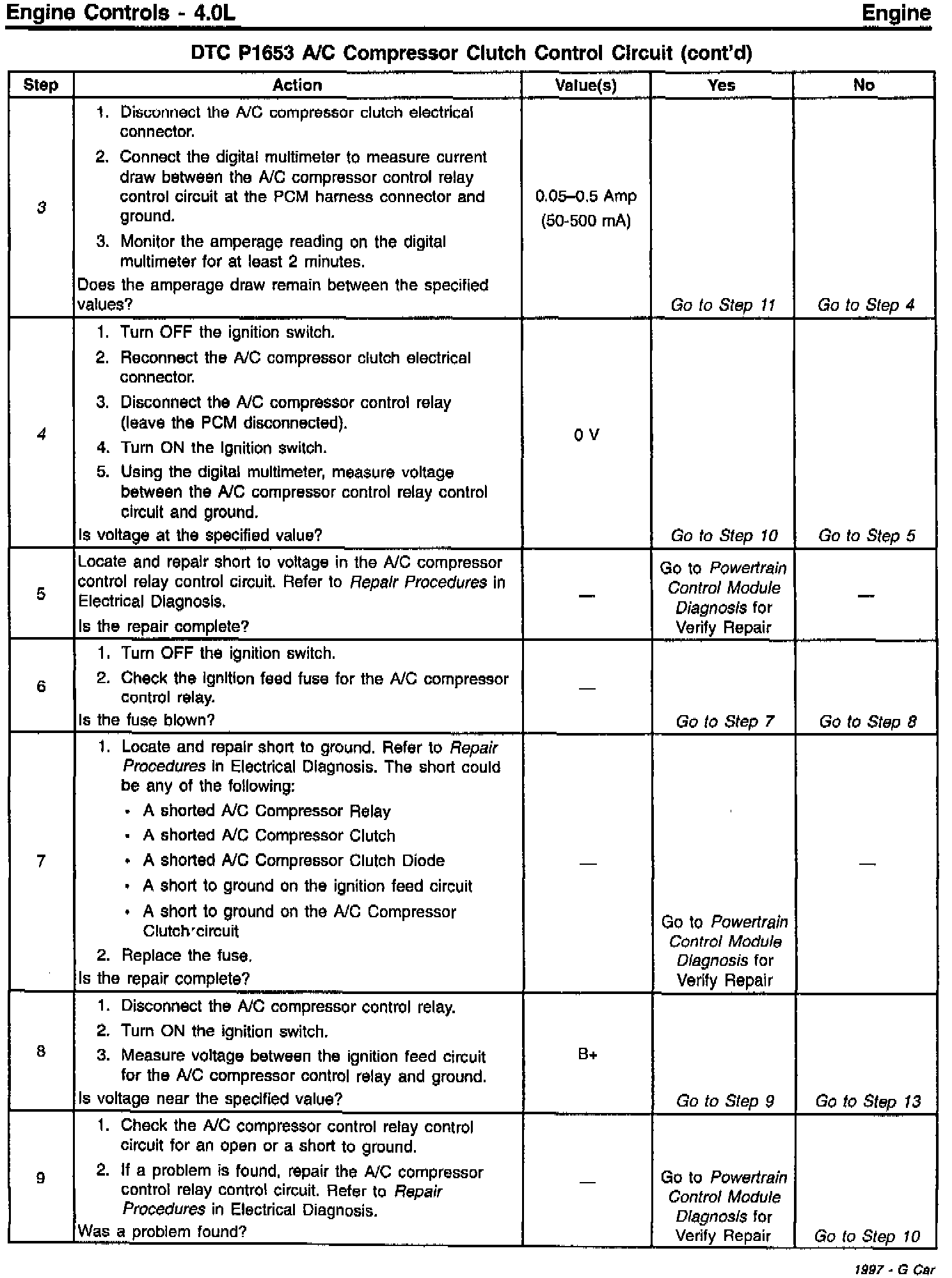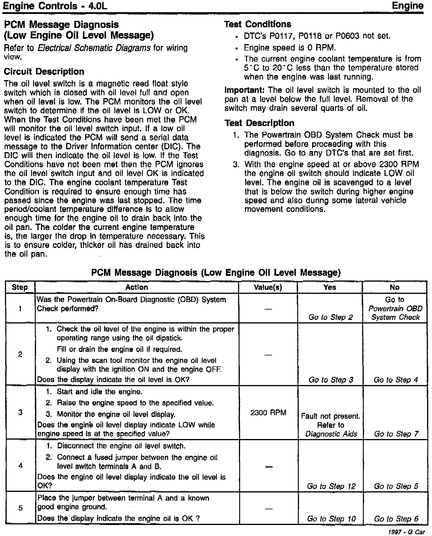 Add to the 1997 Engine Controls section the following diagnostic information: