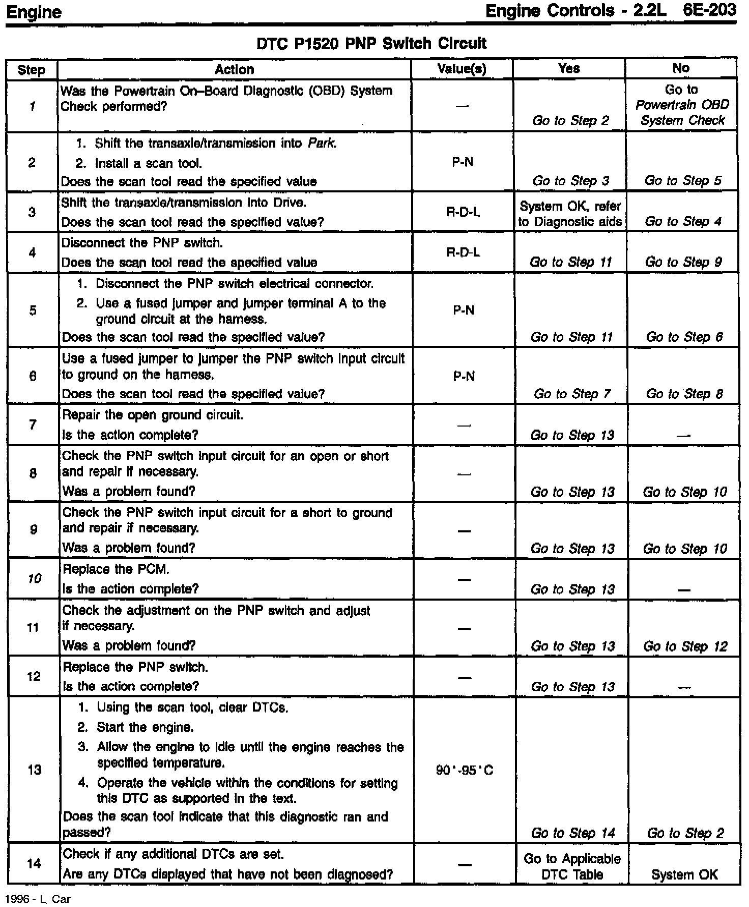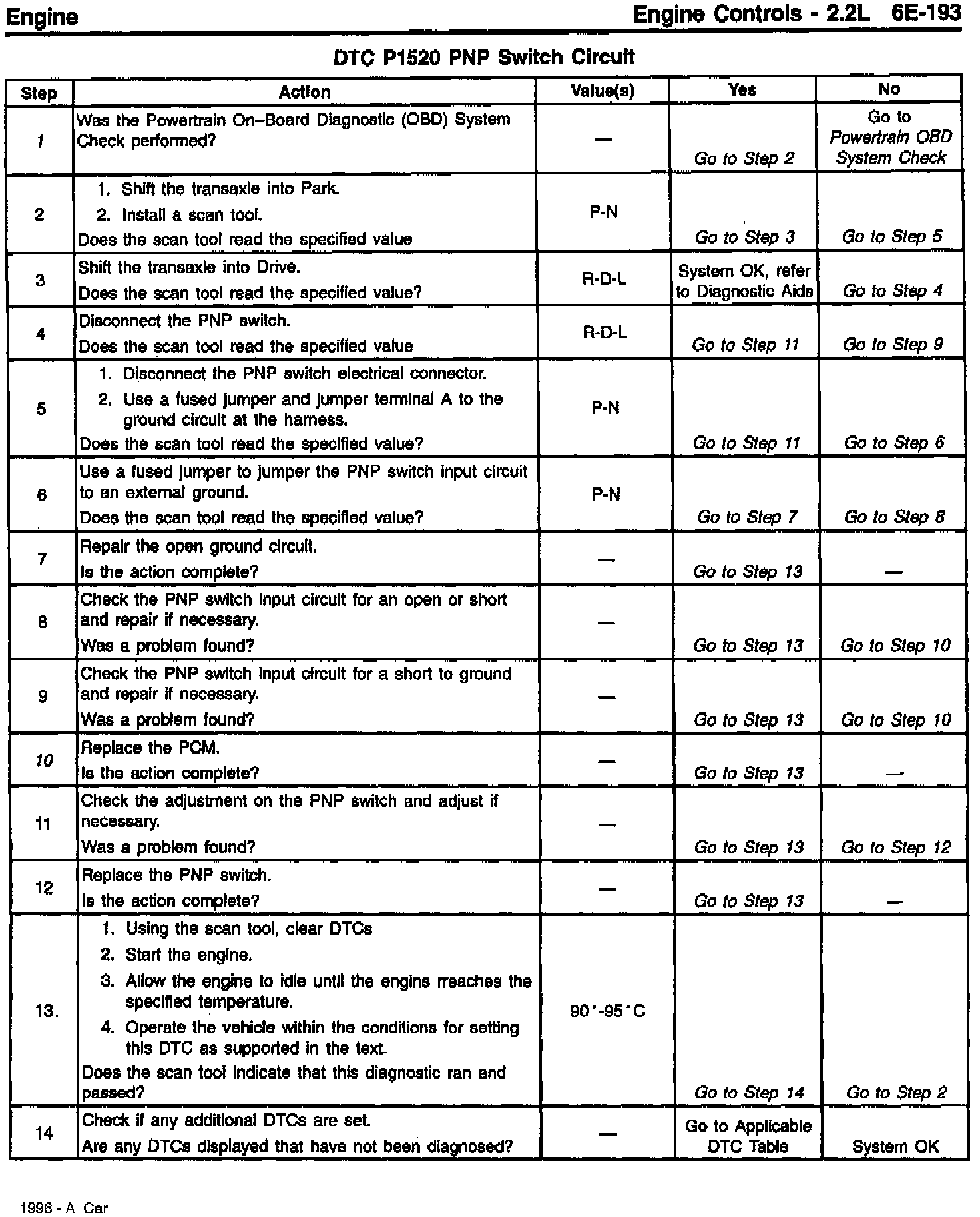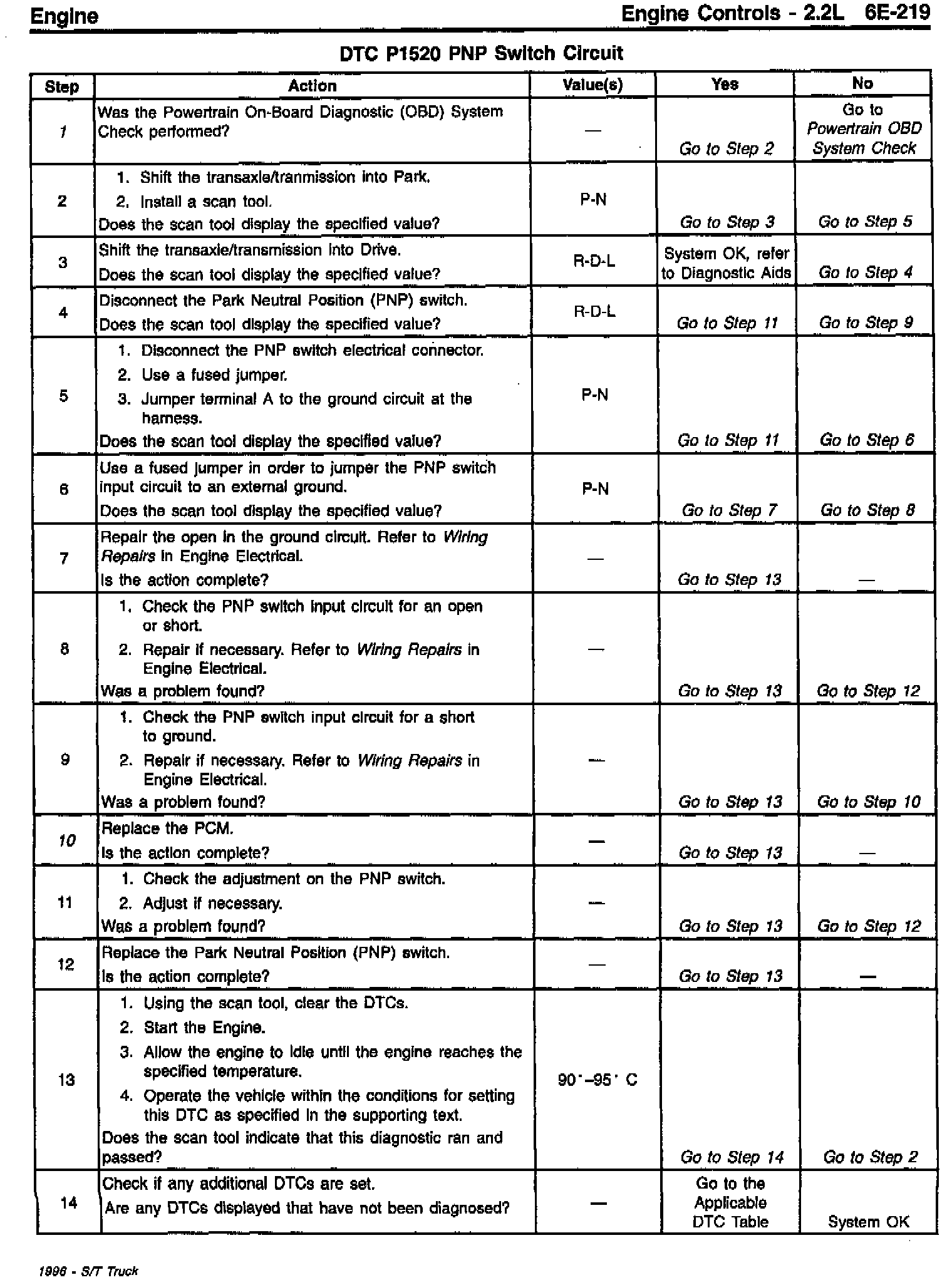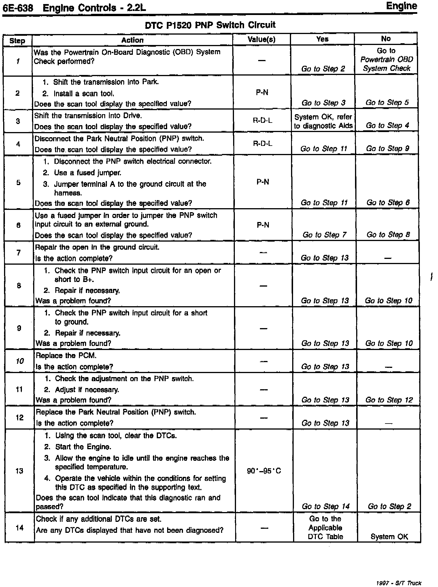This bulletin is being issued to revise the DTC P1520 Park Neutral Position (PNP) Switch Circuit Table in the following Service Manuals: