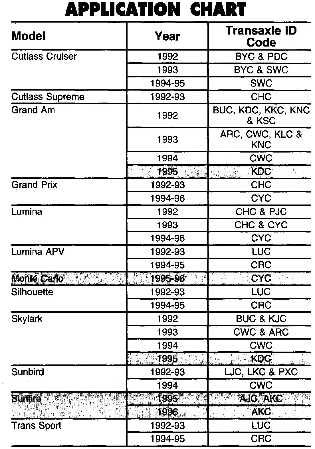 Automatic Transmission/Transaxle: Application and ID