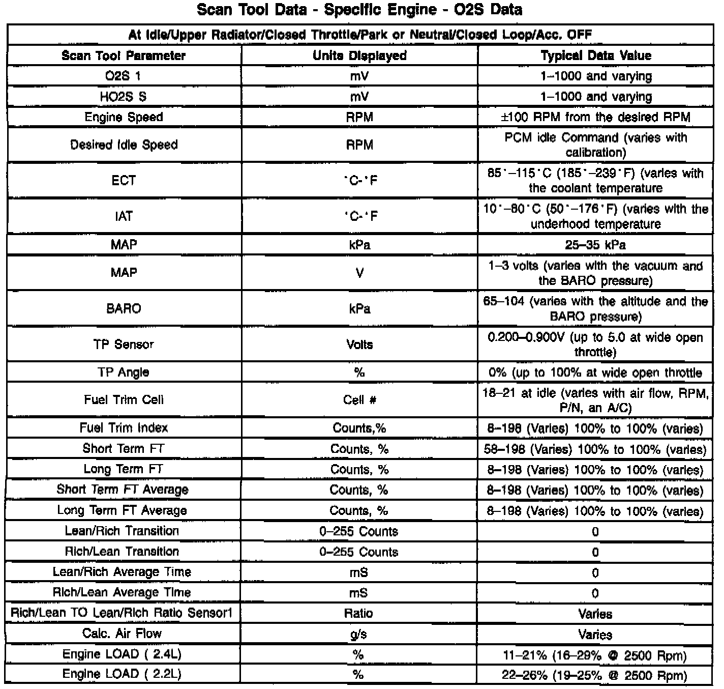 Scan Tool Data List