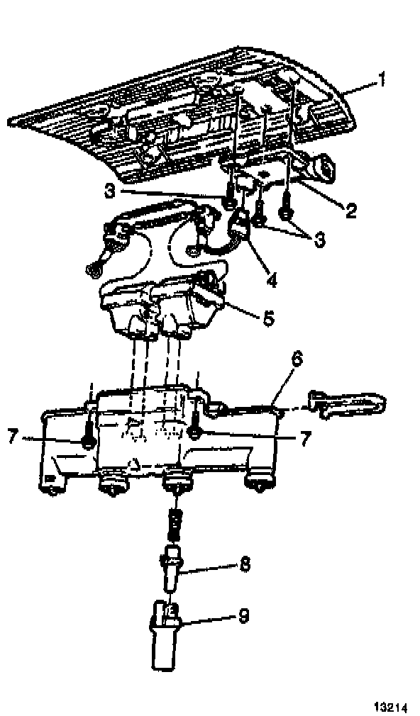8. Install the ignition coil and the ignition control module assembly to cam housing bolts after coating the threads with P/N 1052080. Tighten the bolts to 22 Nm (16 lb. ft.).