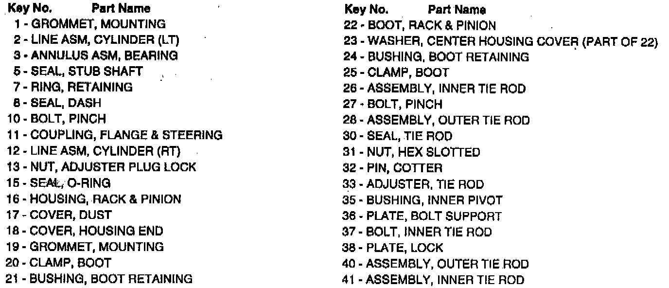 Power Steering Gear - Legend: