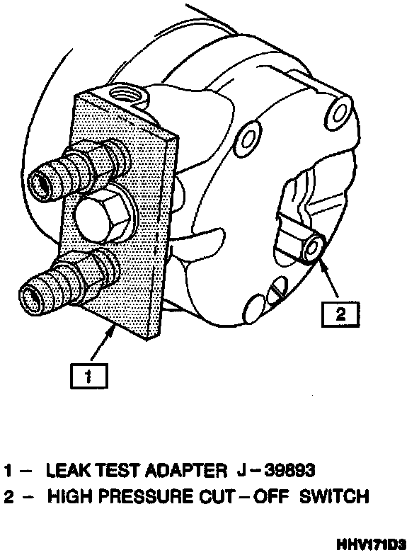 3. Using leak detector J 39400, check for leaks at pressure relief valve, rear head switch location, compressor front and rear head seals, through bolt head gaskets and compressor shaft seal.