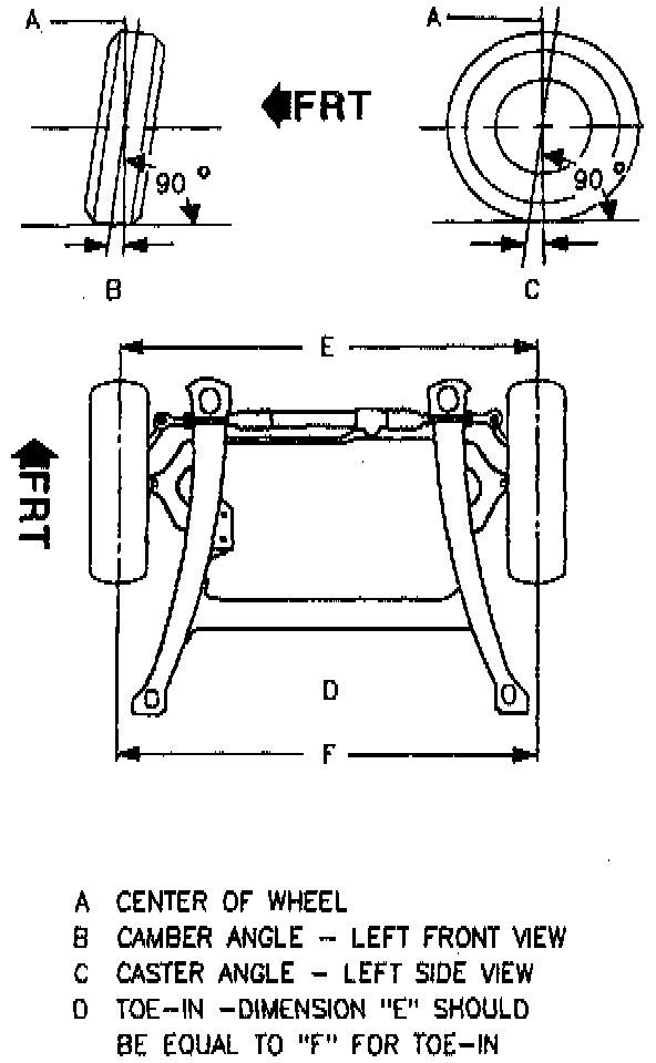 Toe also serves to offset the small deflections of the wheel support system which occurs when the vehicle is rolling forward. In other words, even when the wheels are set to toe in or out slightly when the vehicle is standing still, they tend to roll parallel on the road when the vehicle is moving. Toe affects tire wear.