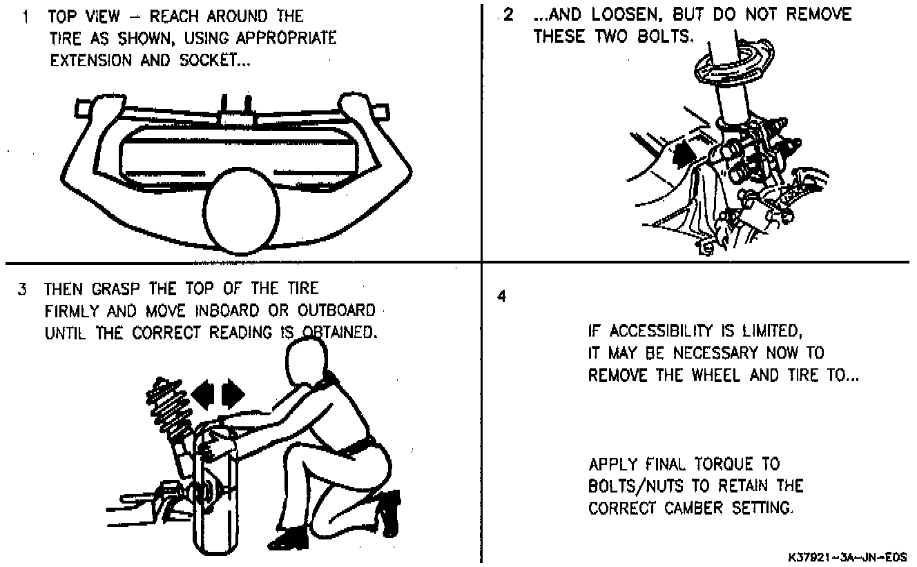 1. When camber adjustment is necessary, refer to instructions on modifying the front strut.
