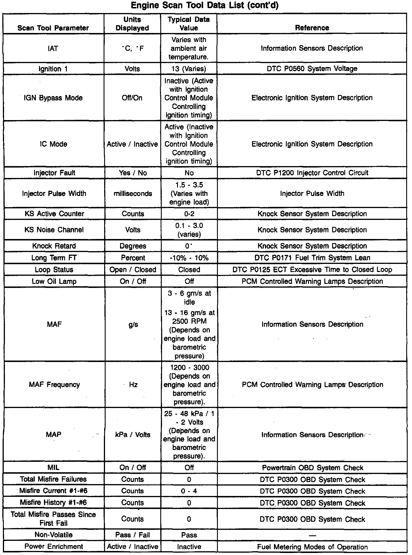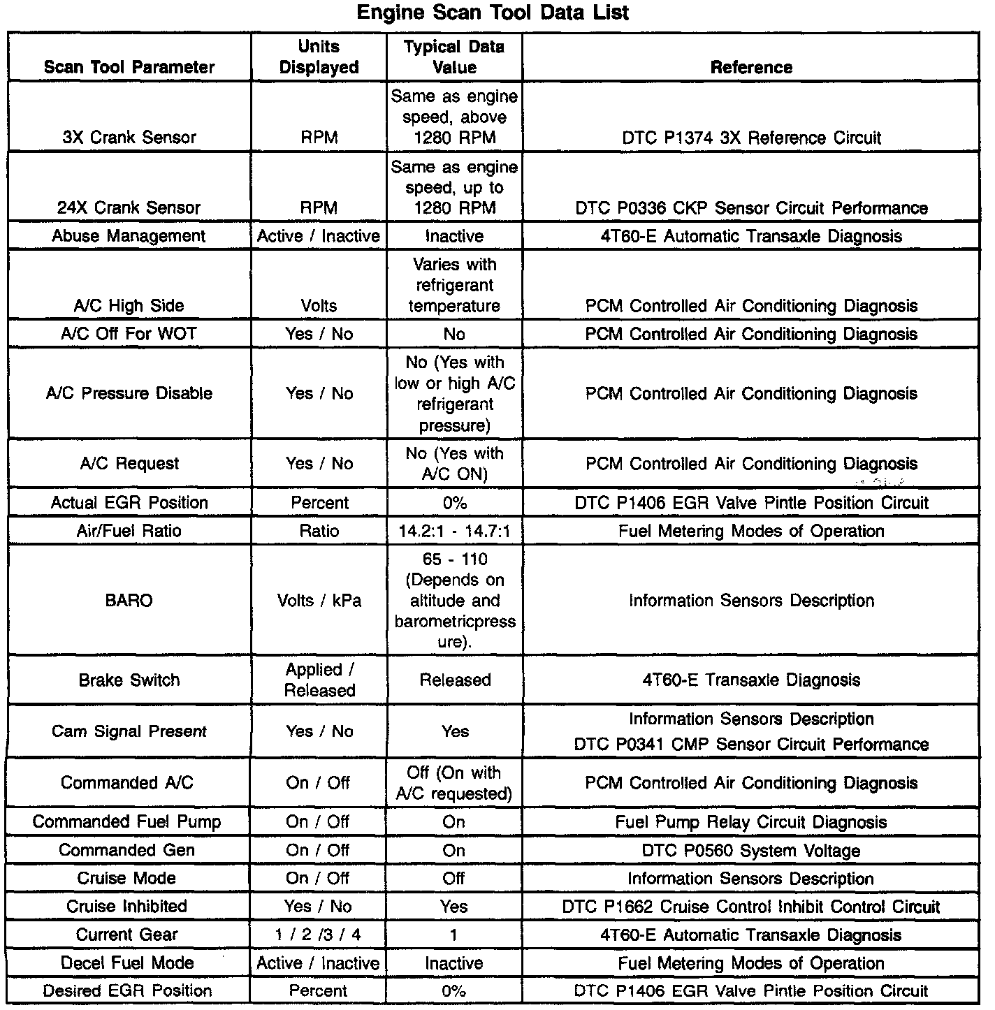 Scan Tool Data List