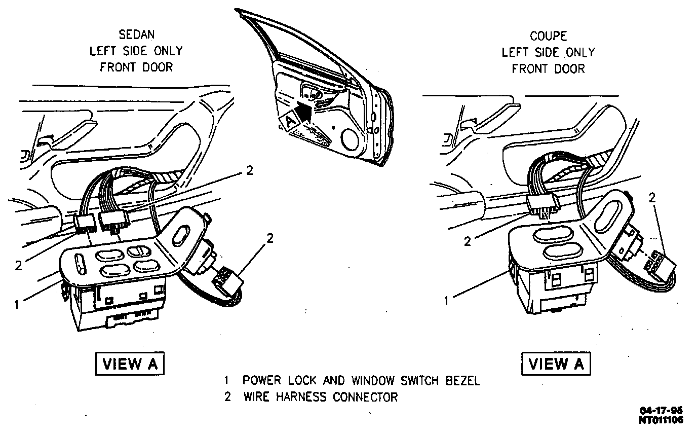 1. Pry at top of power lock and window switch bezel using a flat blade screwdriver.