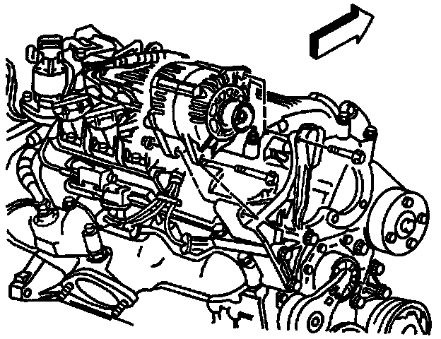 6. Loosen generator front and rear braces from intake manifold.